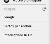 Se così non fosse tenete acceso il vostro dispositivo su una pagina qualsiasi di Firefox e cliccate sulla rotellina “aggiorna” di fianco alla scritta “Dispositivi USB”. - Una volta che apparirà il vostro dispositivo cliccateci sopra e vedrete nella colonna di sinistra apparire il campo “Schede” con l’elenco delle schede aperte.